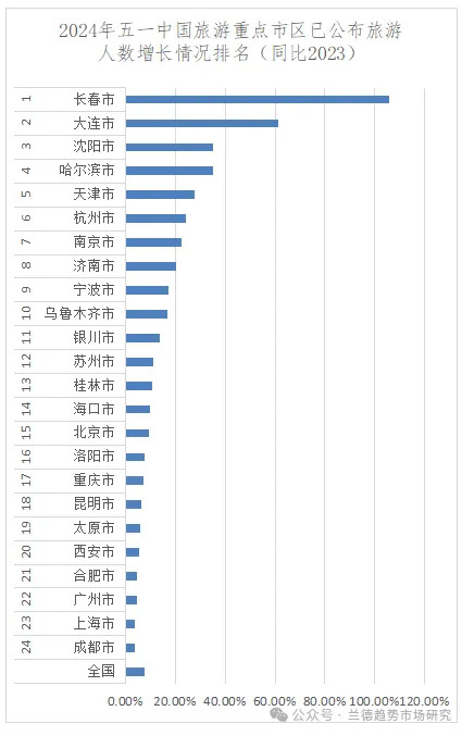 文旅部數(shù)據(jù)顯示,五一國內(nèi)游客出游總花費1668.9億元,同比增長12.7%。根據(jù)公布數(shù)據(jù),2024年五一期間旅游收入增長省排名中,吉林、遼寧、內(nèi)蒙古、甘肅、新疆排名前五;市排名中長春、大連、沈陽、哈爾濱銀川排名前五。